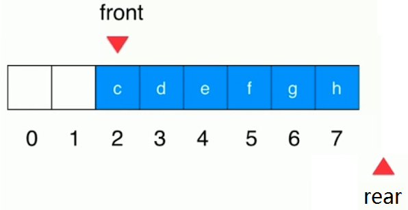 - 进队(enqueue):将数据从队尾插入,队列元素加 1