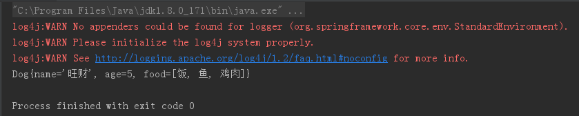在前面的例子中,在配置 Dog 类时,Dog 的每个属性分别对于一个<property>元素标签。