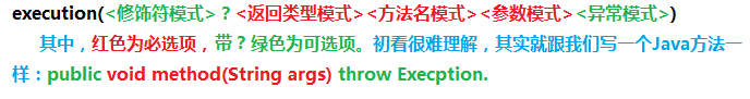| 方法切点函数 | execution() | 方法匹配模式串 | 表示满足某一匹配模式的所有目标类方法连接点 |