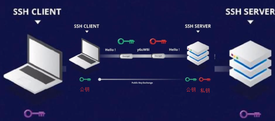 • ③ 远程服务器用自己的私钥,解密公钥加密过的登录密码,若密码正确,就同意用户登录