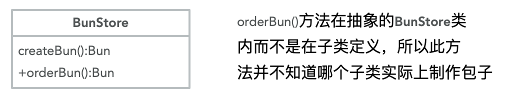 答:这个应该从BunStore类的orderBun()方法来看,此方法在抽象的BunStore类中定义,但是只在子类中实现具体类型。