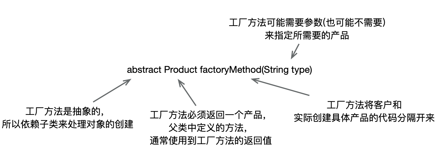 经常有开发人员说:工厂方法让子类决定要实例化的类是哪一个。希望不要理解错误,所谓的“决定”,并不是指模式允许子类本身在运行时做决定,而是指在编写创建者类时,不需要知道实际创建的产品是哪一个。选择了使用哪个子类,自然就决定了实际创建的产品是什么。