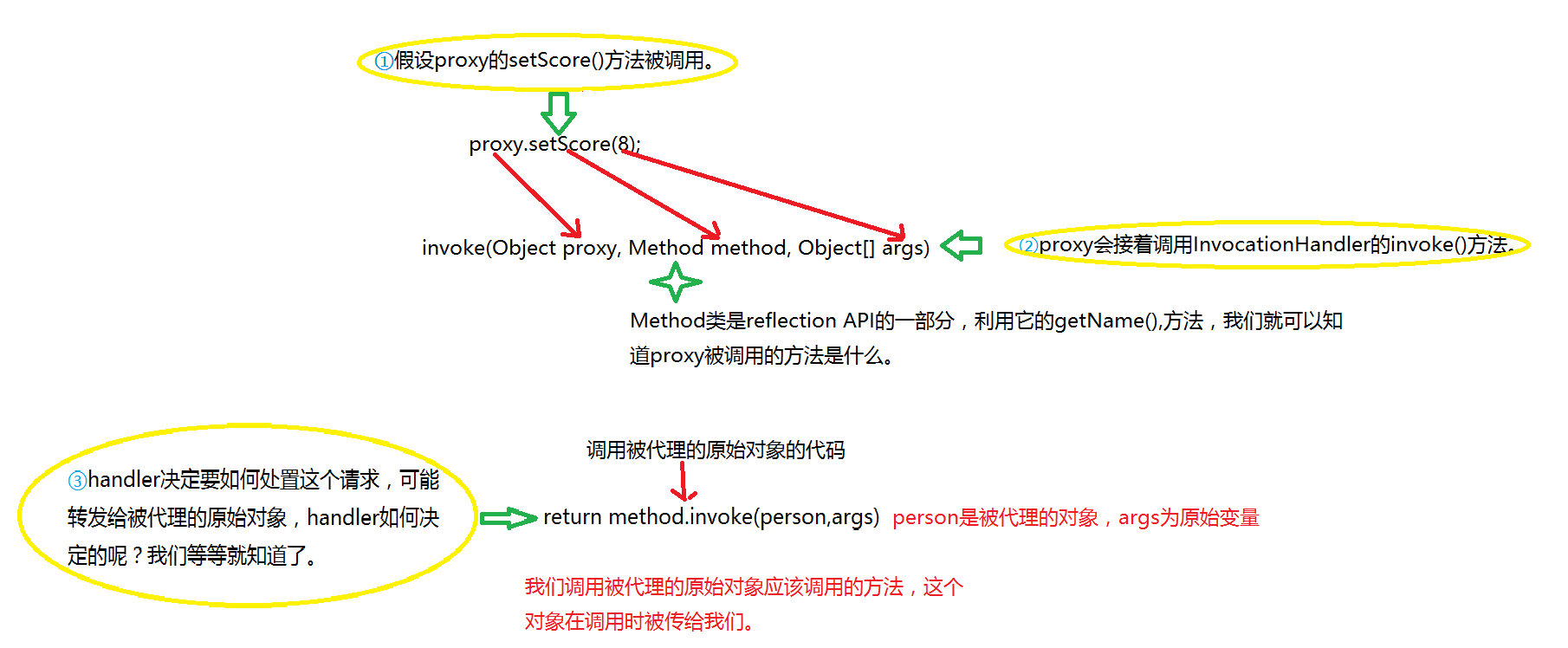 可以把InvocationHandler接口实现类想成是代理收到方法调用后,请求做实际工作的对象。