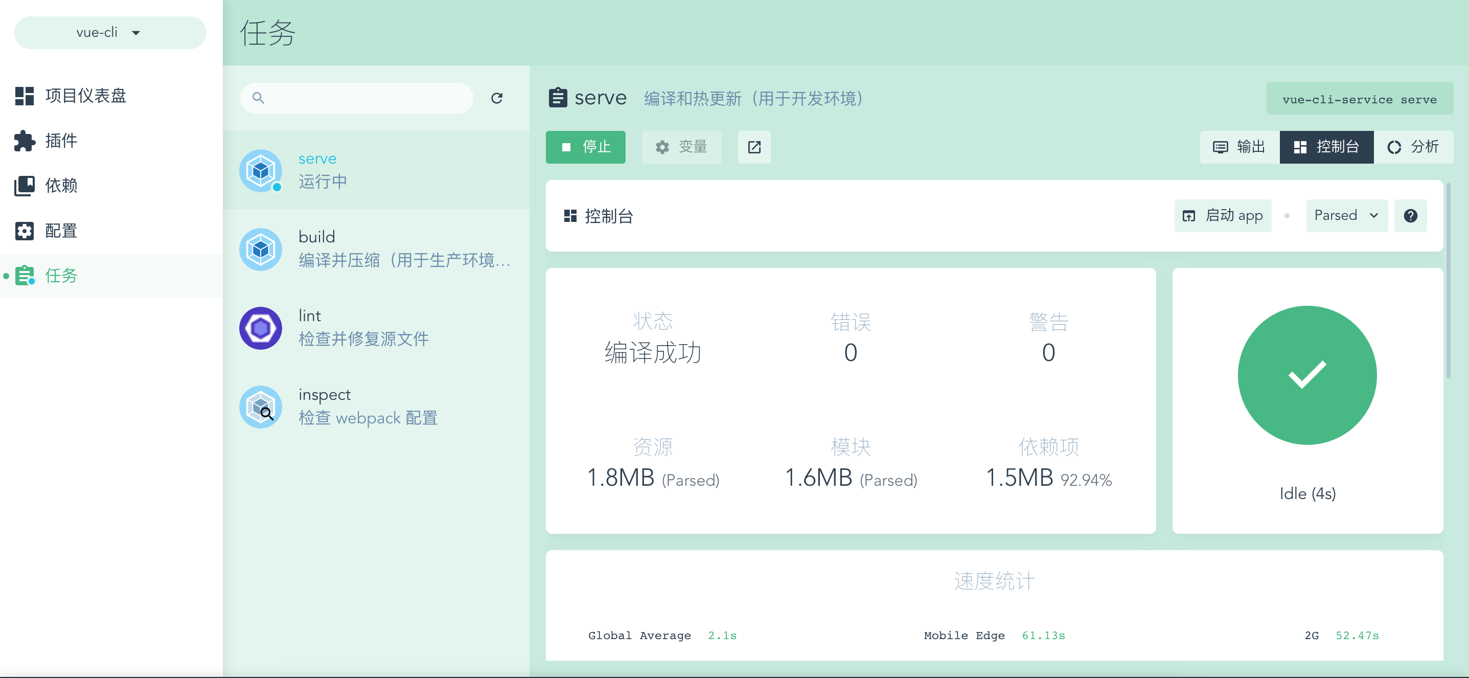 Vue CLI 3 提供了非常友好的 UI 界面,通过下面的命令即可启动:1